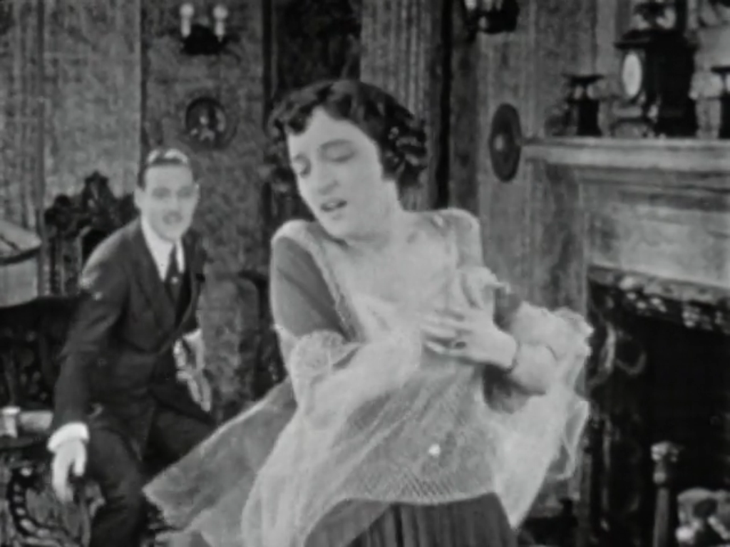 Still from James Vincent, dir. Marguerite Namara and Rudolph Valentino in Stolen Moments. America Cinema Corporation, 1920. Vague Visages.